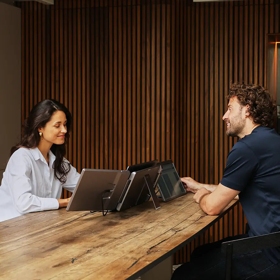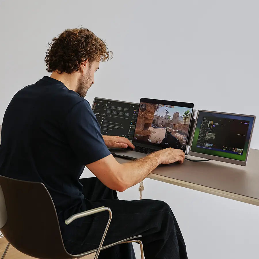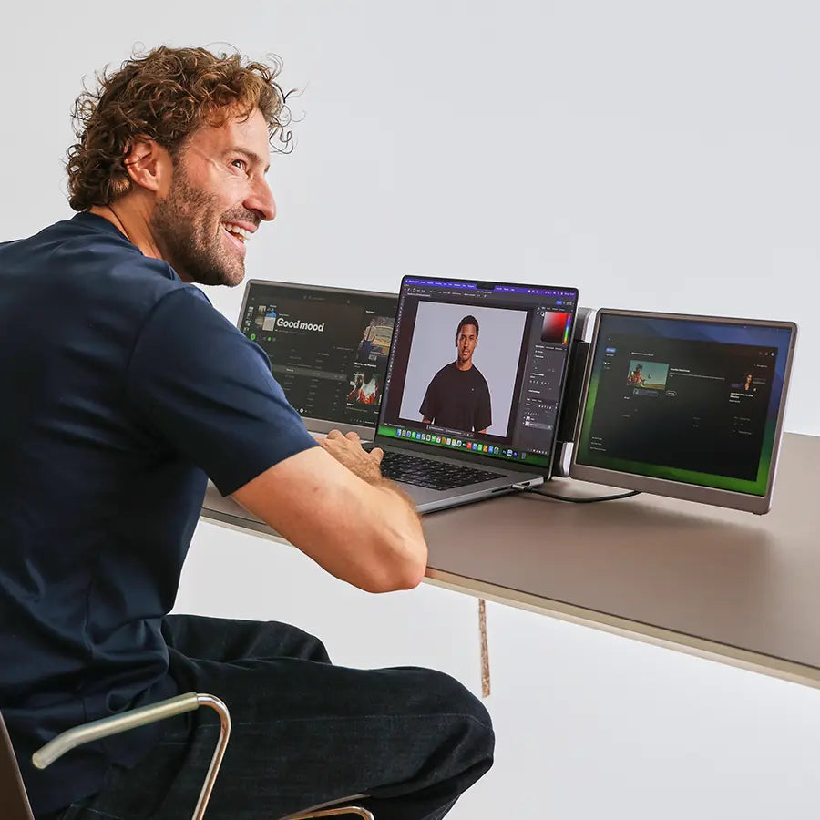 Wil je flexibel kunnen werken én presenteren zonder gedoe? De Screenmate® Flip is een slimme en veelzijdige draagbare monitor die je werkplek in één beweging uitbreidt met twee extra schermen. Dankzij het robuuste ontwerp en het heldere 14 inch IPS-display is de Screenmate® Flip perfect voor multitasking, samenwerken en presentaties. Het unieke flip-mechanisme maakt het mogelijk om het linker scherm eenvoudig te kantelen richting de persoon die tegenover je zit. Ideaal voor klantgesprekken, teamoverleg of het delen van visuele content. De Screenmate® Flip combineert flexibiliteit, stevigheid en eenvoud met de kwaliteit die je van Screenmate mag verwachten.